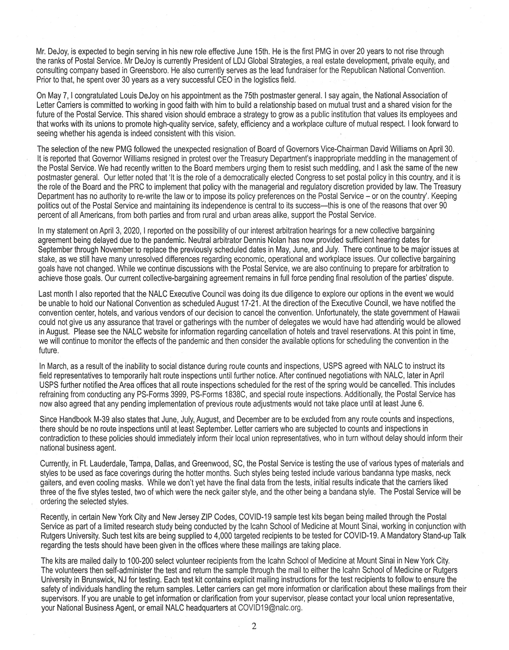 NALC Presidents Fred Rolando & Branch #34’s Jerry McCarthy Update The Membership On Coronavirus IssuesPublished by admin on May 19, 2020May 19, 2020 F-Rolando-5-13-2020-2 Image 3 of 4 Categories: Uncategorized